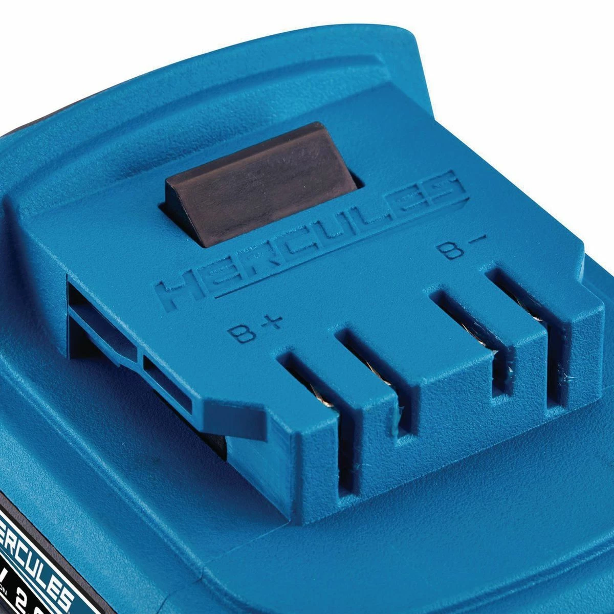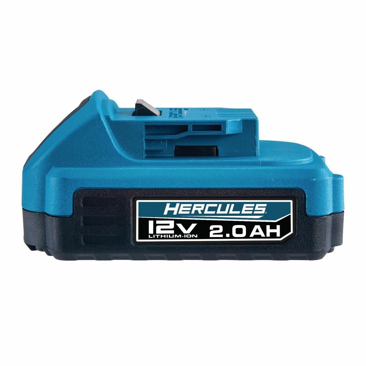 The HERCULESโข Lithium 2.0 Ah Battery delivers plenty of power and runtime for the HERCULESโข 12V platform. The easy-view fuel gauge tells you exactly how much power remains before you need to recharge.