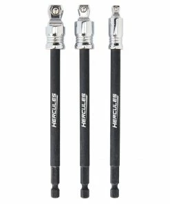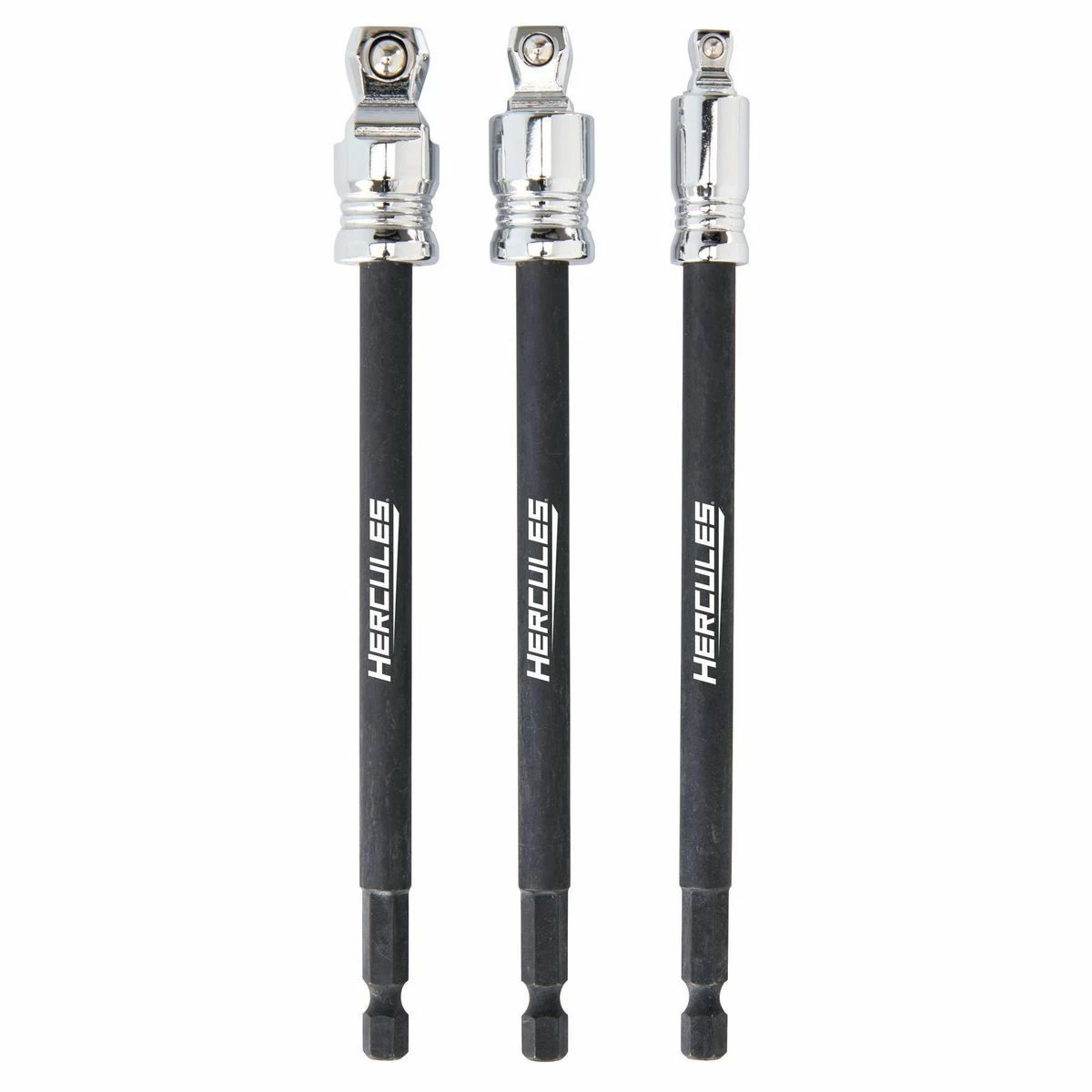 Heavy duty HERCULES™ Impact Rated 6 in. Wobble Socket Adapter are designed to allow some “give” to the socket so you can remove and install fasteners even you can’t get a straight-on approach. The TorqPoint™ Shock Absorbent Zone provides extra strength so you can use your impact sockets with a standard drill/driver or impact driver. The adapters are constructed with advanced metallurgy to stand up to heavy use in impact tools. Quick change 1/4 in. hex shanks. Black oxide coating increases durability and prevents corrosion.