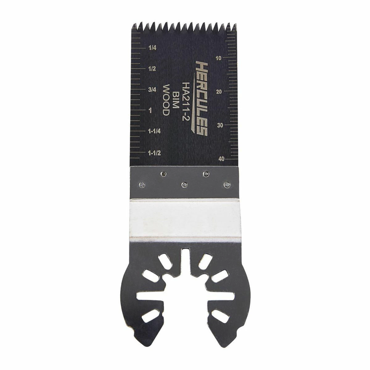The HERCULESโข 1-3/16 in. Bi-Metal Plunge/Flush Precision Tooth Cutting Blade is with deep gullets between the teeth for faster material removal with each cut. The offset blade with extra-strong welds is equally suited to plunge cutting or making super-clean flush cuts. The extra-sharp bi-metal teeth stay sharp cutting hardwood. The blade is laser-etched with depth markings for making precise cuts.