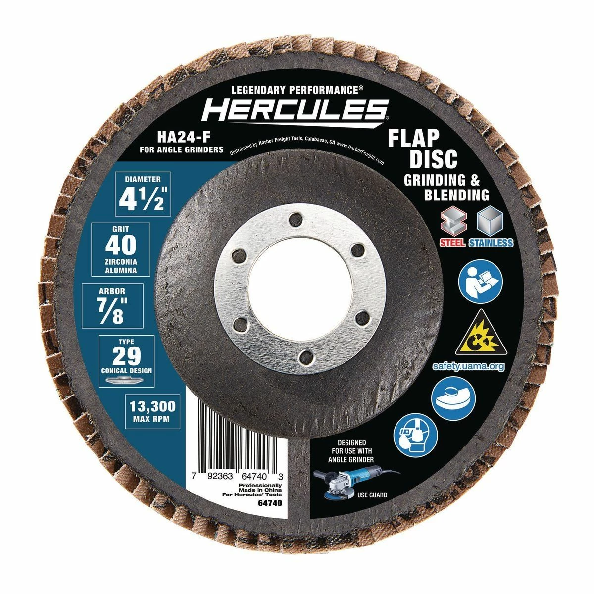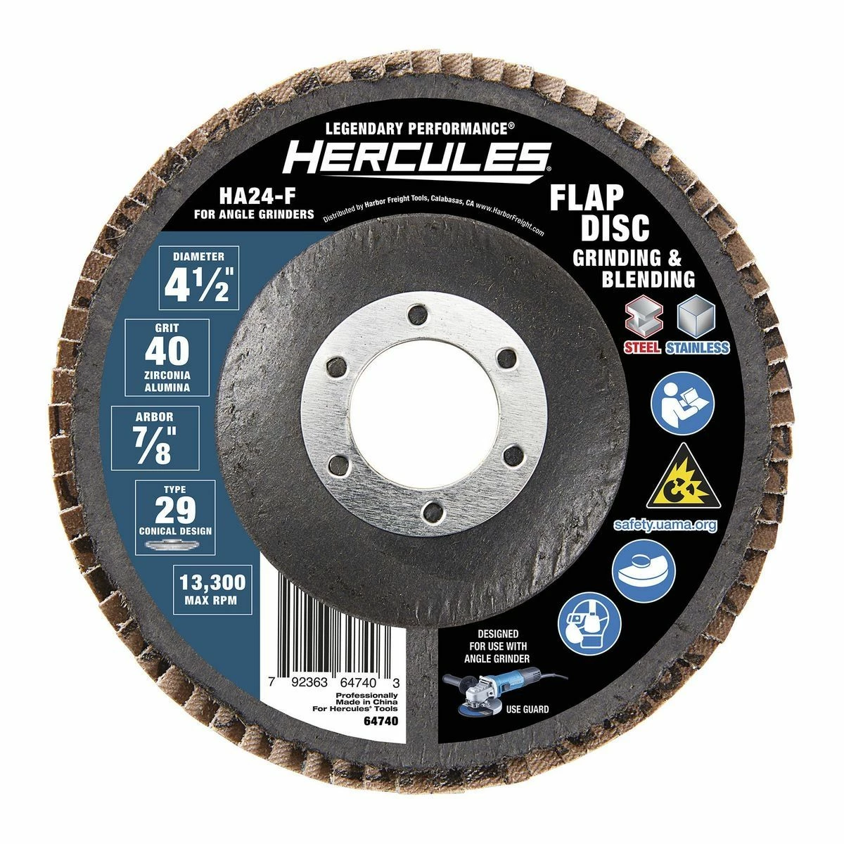 This HERCULESโข flap disc has a premium blend of tough zirconia abrasive for ultra-fast stock removal and surface finishing. The durable fiberglass flap plates flex under pressure for easy smoothing and shaping of contours.